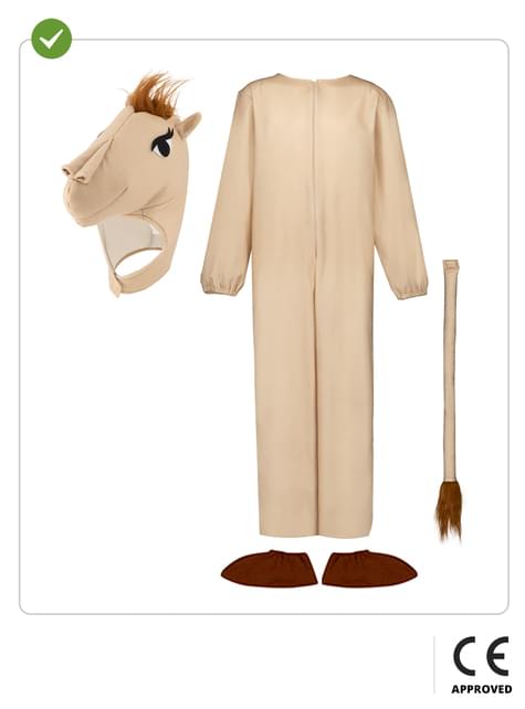Costumul este ok. Capul camilei nu are cum sa stea in pozitia din poza, deoarece baza este foarte larga. In rest, daca nu folosim capul la piesa de teatru, va fi ok.