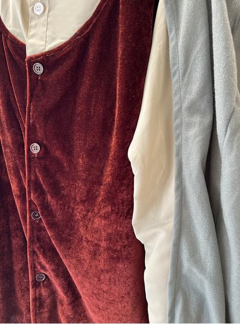 Apmetnis atstāj daudz ko vēlēties. Par kostīma cenu tas varētu būt labāks. Uzvalks ir samts un izskatās ļoti jauki, tāpat kā krekls. Mans dēls ir 1,10 m garš un 3 gadus vecs, es viņam nopirku 5/6 izmēru un tas viņam labi der.