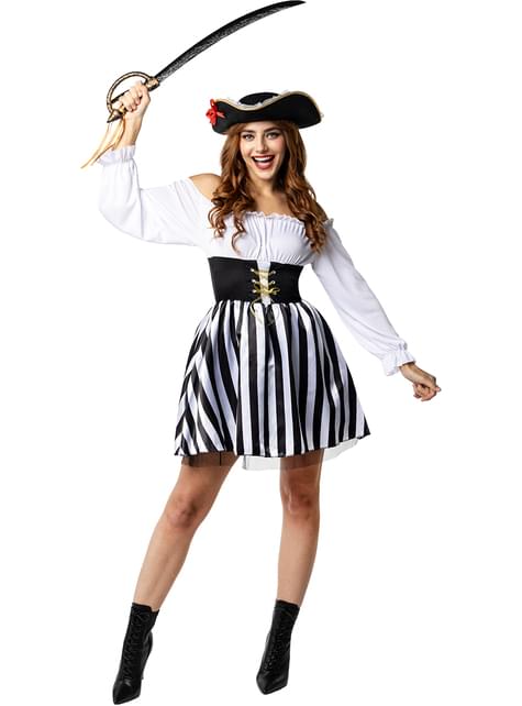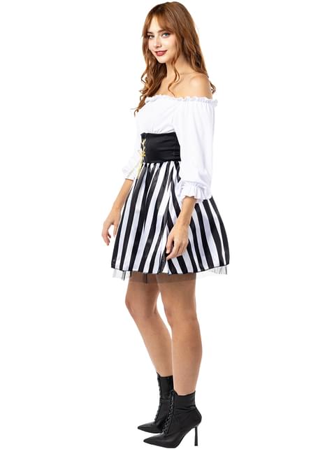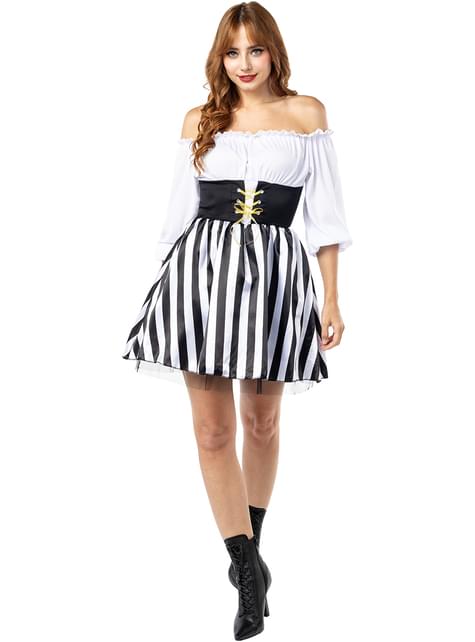 Lielā izmēra sieviešu svītrainais pirātu kostīms - melnbalta kolekcija