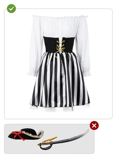 Produktu vērtējums: "Lielā izmēra sieviešu svītrainais pirātu kostīms - melnbalta kolekcija"