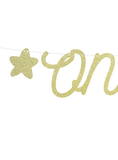 "Viens" garland zeltā ar zvaigznēm - rozā 1. dzimšanas diena