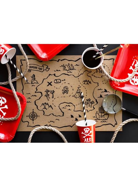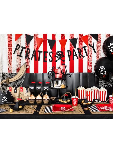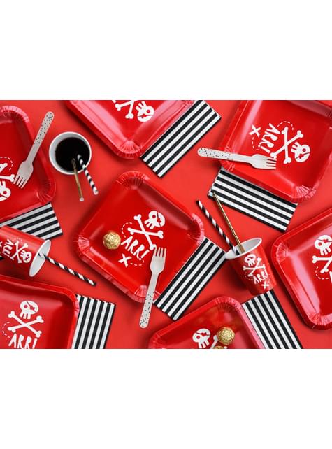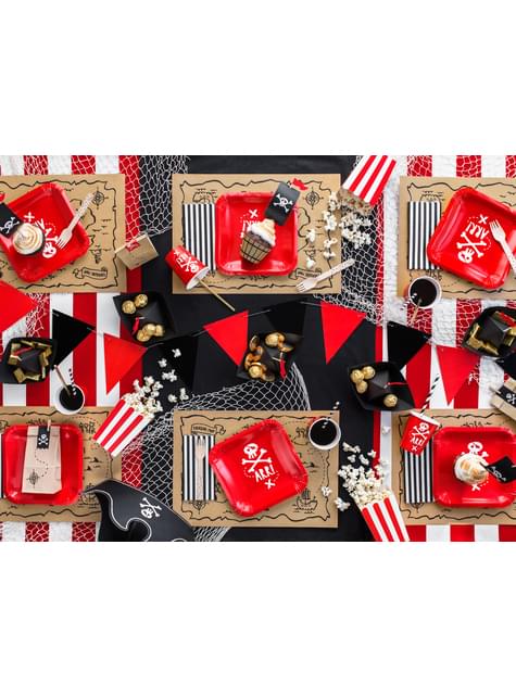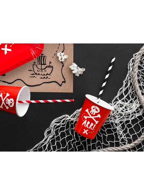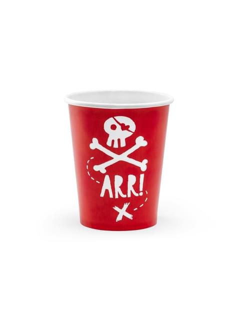 6 pirātu papīra kausu komplekts, sarkano pirātu partija